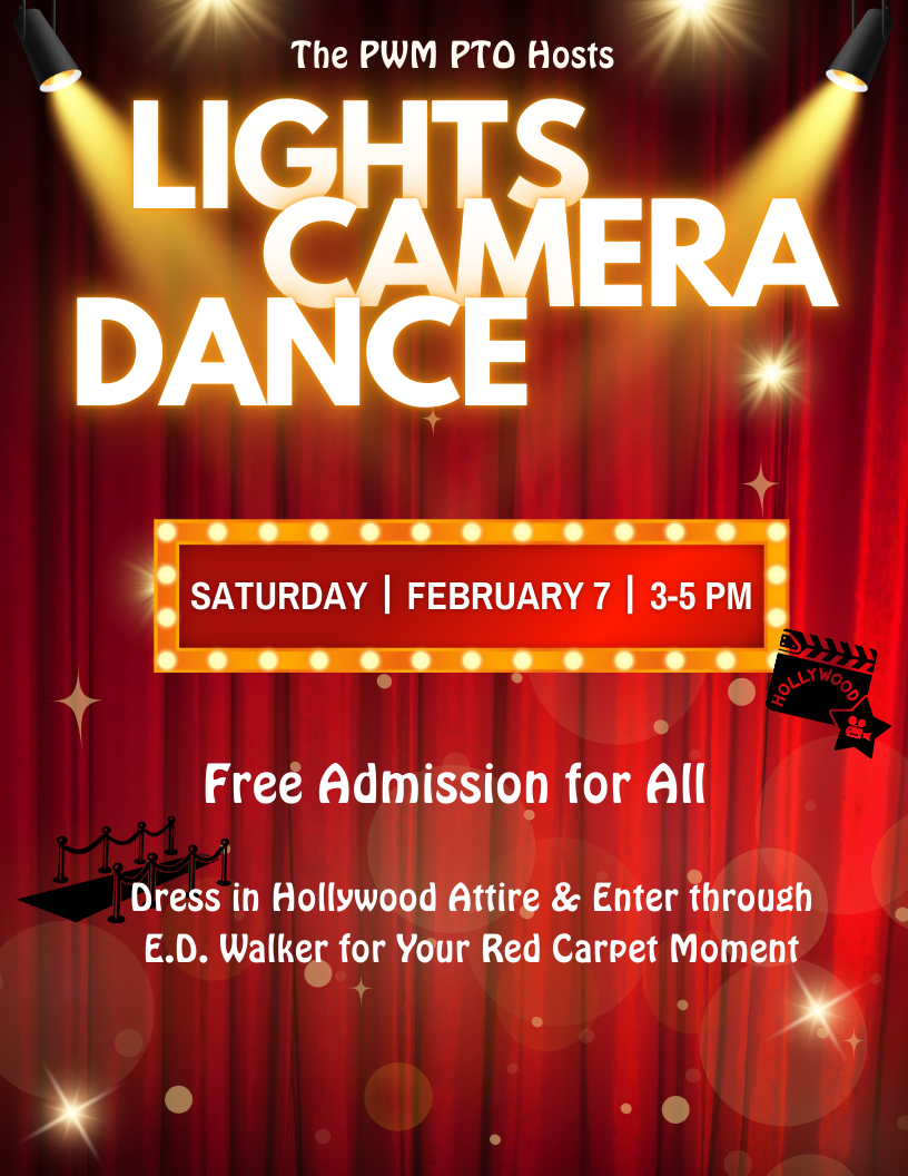 A school-wide Hollywood-themed dance with music, sparkle, and fun for all ages.